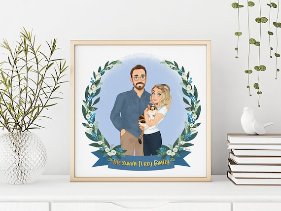 Family Portrait Illustration Custom Family Portrait Drawing Couple Portrait Cartoon Housewarming Gift Wedding Gift Pet Portrait