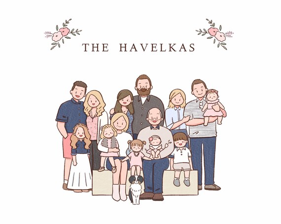 Extended Family Illustration Family Portrait Custom Portrait Of Large Family Gift For Grandparents Valentine S Day Gift