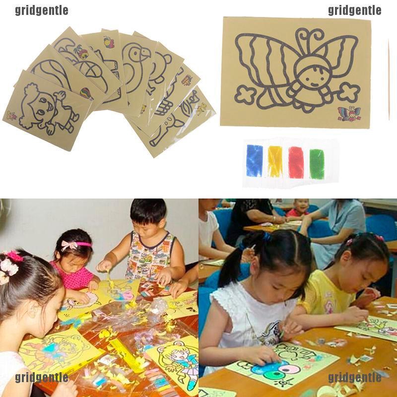 Cp 10pcs Kids Diy Color Sand Painting Art Creative Drawing Toys Sand Paper Crafts