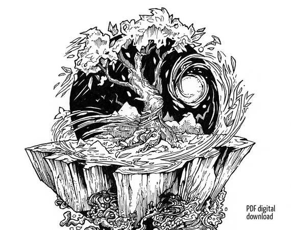 Tree Art Coloring Page Gift Ideas Adult Coloring Pages Moon Art Instant Digital Download Pdf